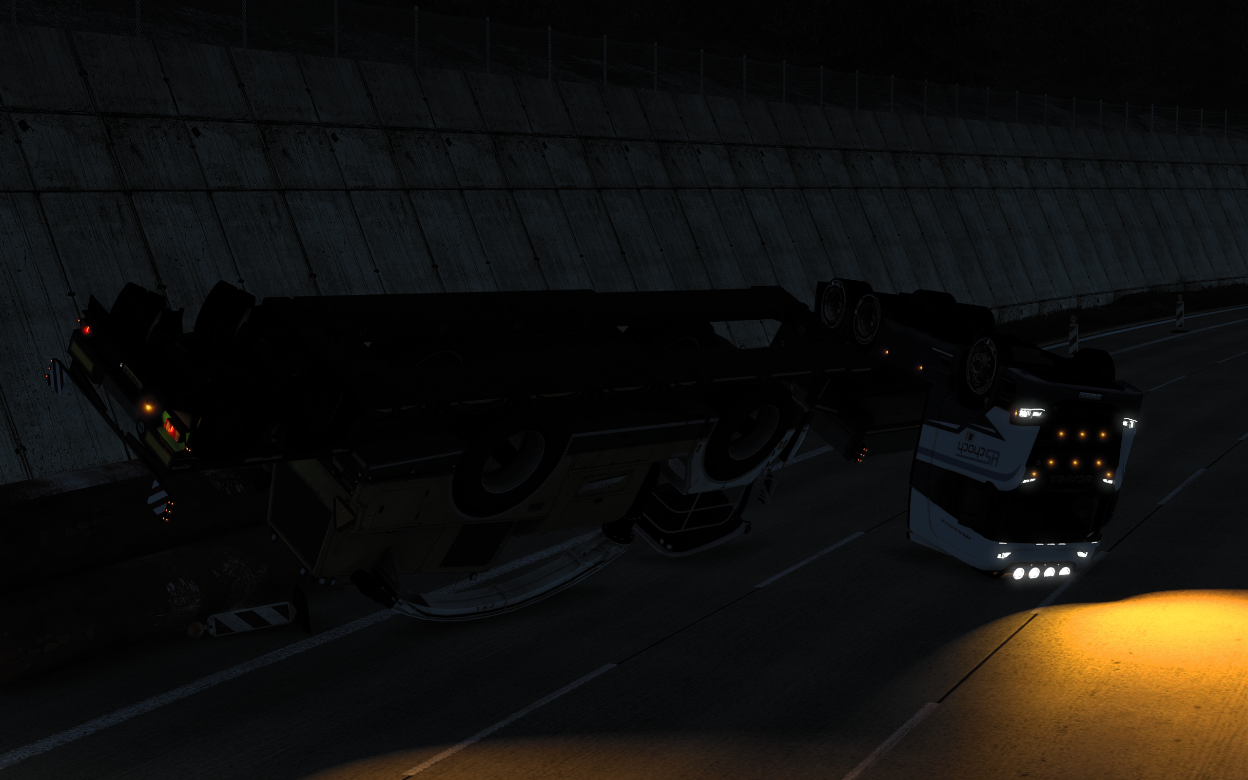 斯堪尼亚770S运送木材粉碎机(26吨)从阿伯丁至曼彻斯特。 |