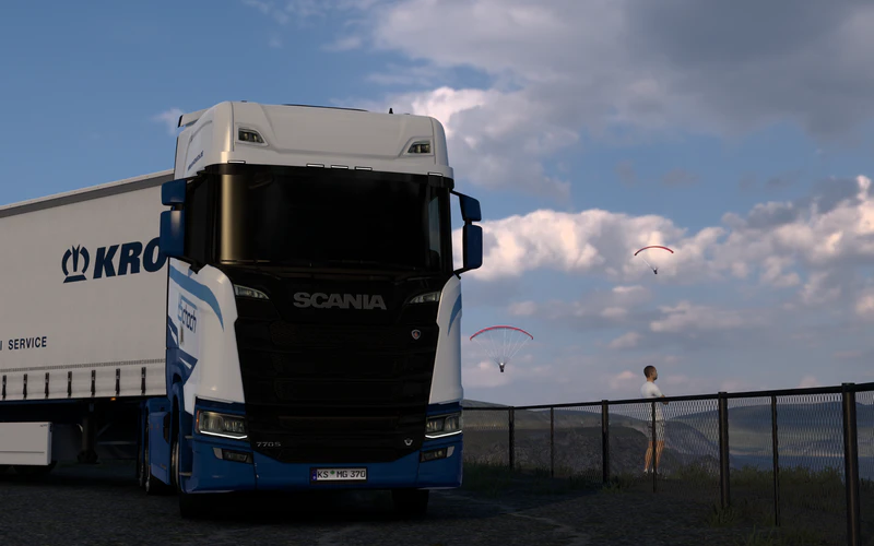 斯堪尼亚770S和克劳耐挂车在北角。