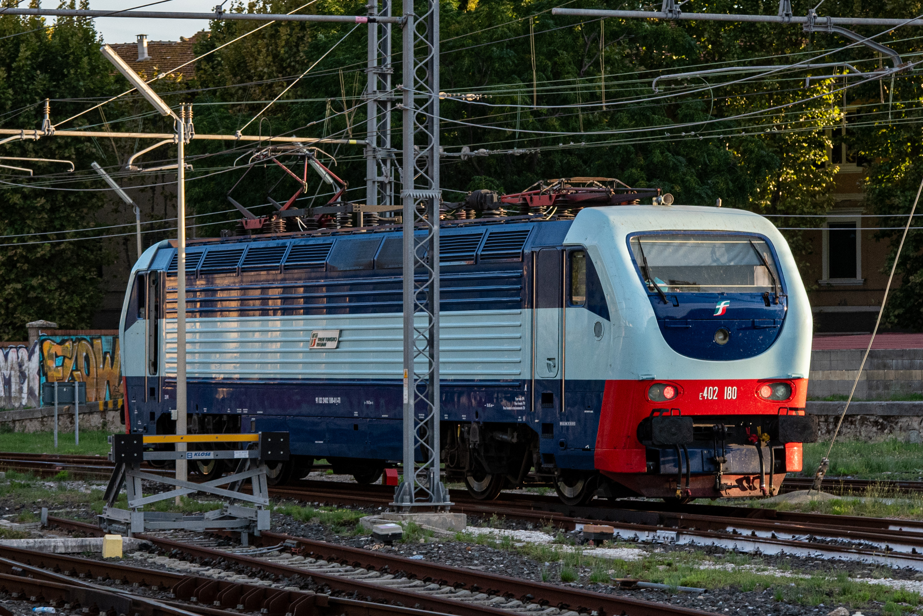 隶属于 treni turistici 车队的 E.402b 180 正在执行换挂作业, 照片摄于 Grosseto 站 |